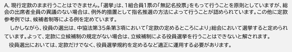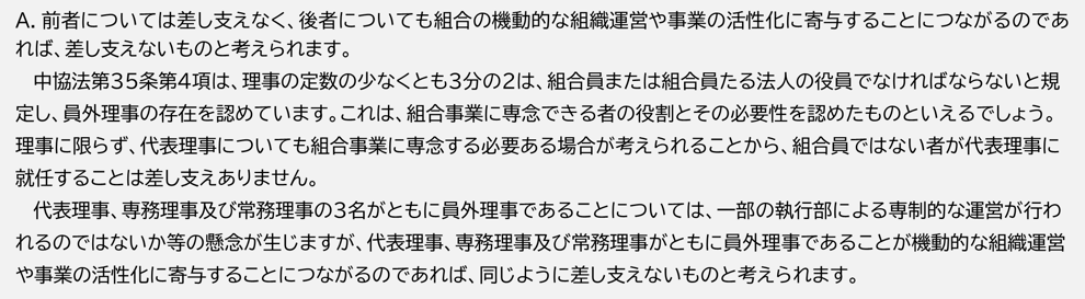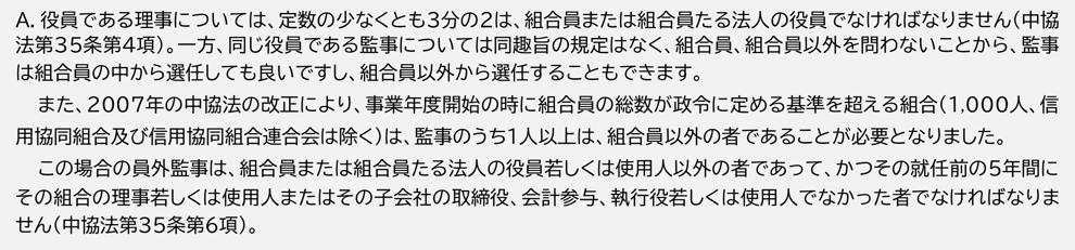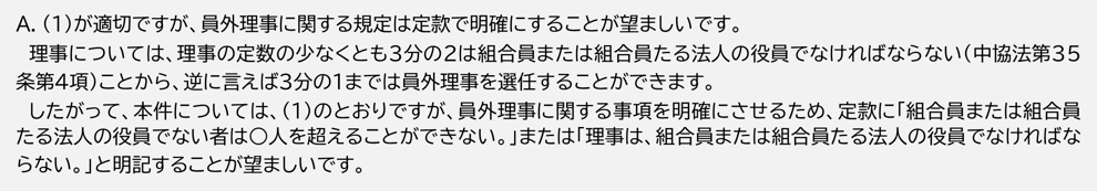 5.員外理事の定めのない組合が員外理事を置くことの可否について